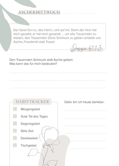 Spiritueller Begleiter von Aschermtitwoch bis Ostern mit täglichen Reflexionsfragen, Habbit Tracker, Glaubensimpulsen